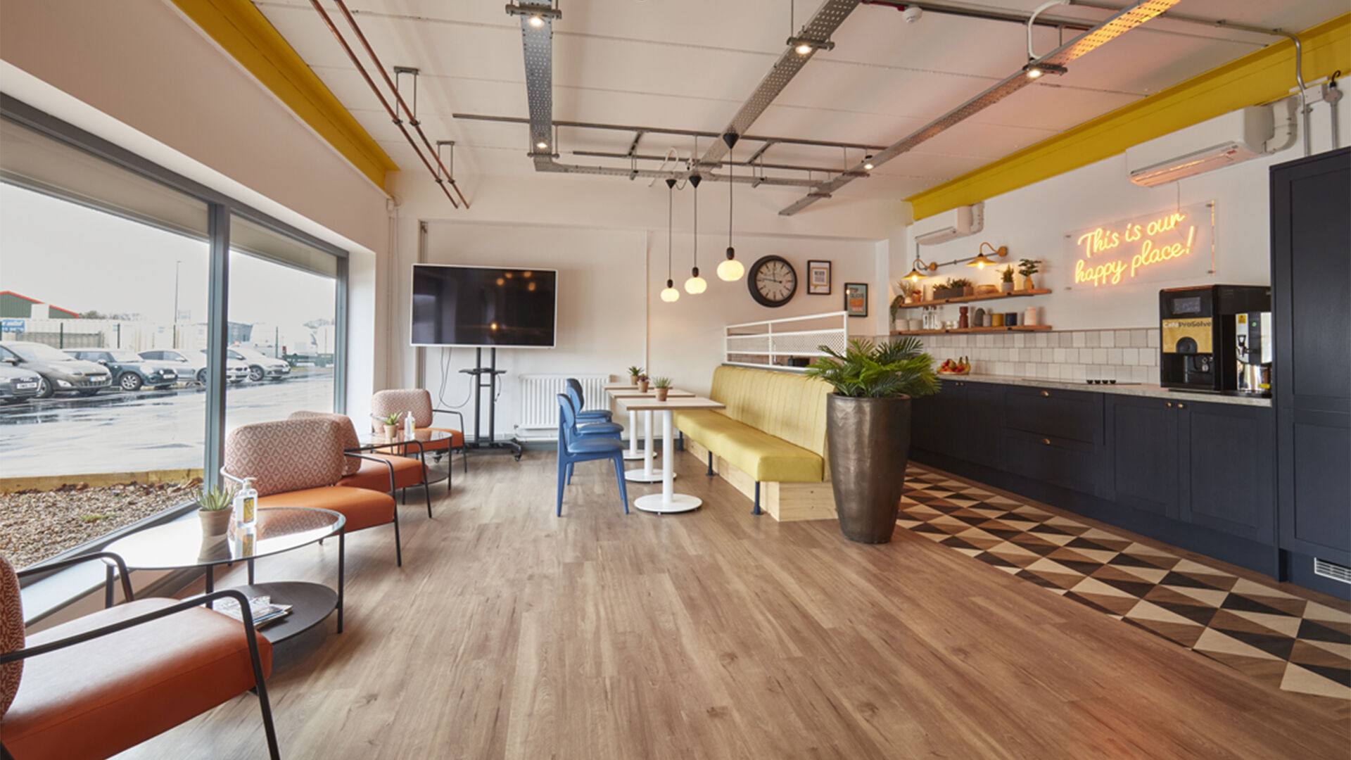 We opened up their existing 2no. directors’ offices, marketing office, board room and tea room to create one larger breakout space for the staff. We removed the 4 smaller windows and installed 2 larger windows to allow light to flood in. We reworked the ladies toilets to create a lobby and refreshed the new ladies bathroom space. We also updated the kitchenette and breakout space for the warehouse staff.