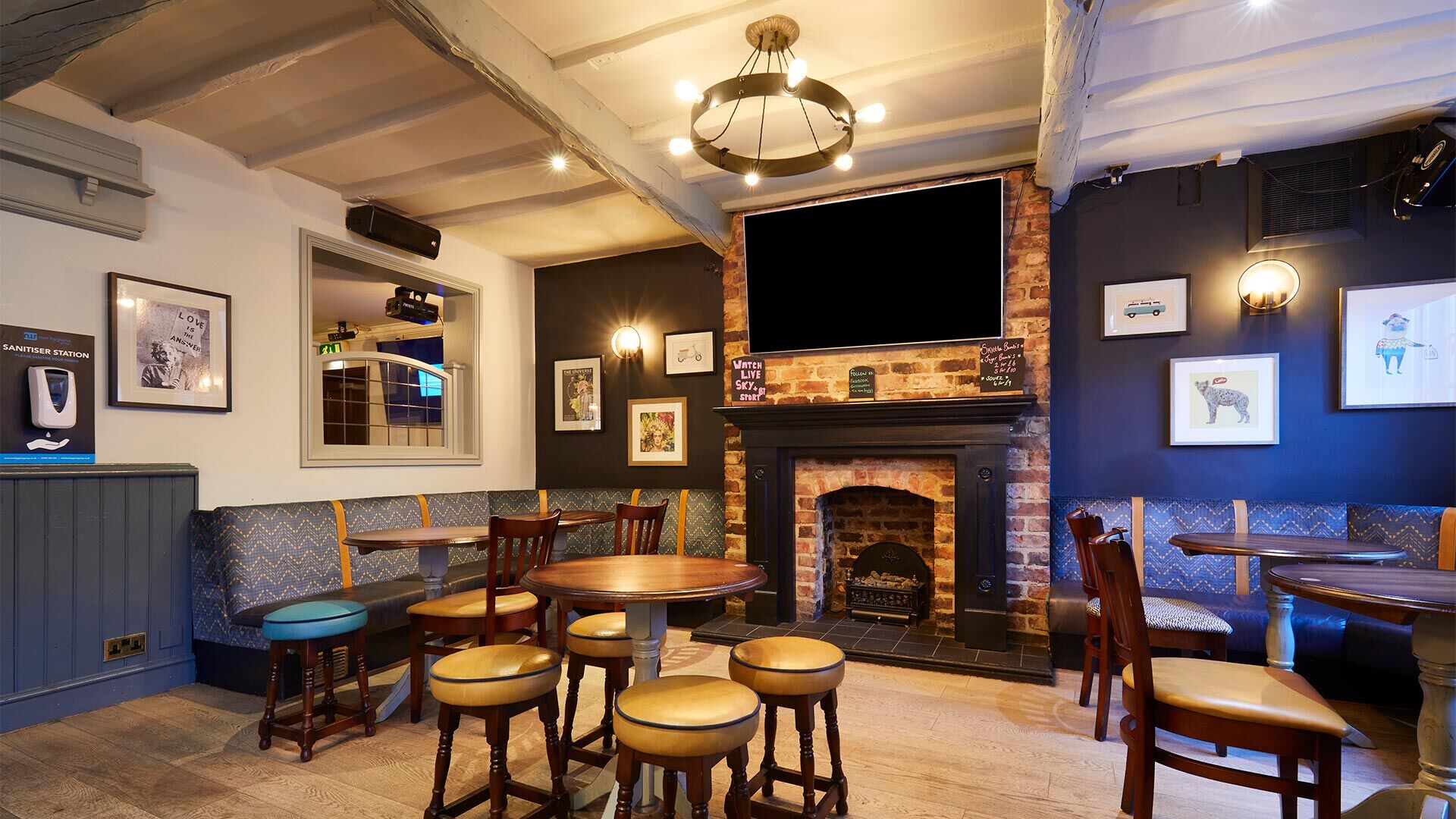 Its new, modern décor style ensures a comfortable daytime food and drink offer with sports viewing option before the pub transforms to a late night drinks venue. Bold colours used in the refurnished furniture add an element of fun to its design which are complimented with one-of-a-kind aesthetics seen in the artwork and vintage accessories.