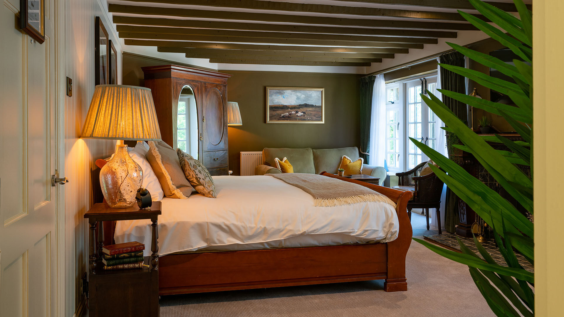 Step inside to be greeted by traditional timber beam work and columns, and old brick work. Teals, greens and crimsons now adorn the walls creating a warm palette that pulls through the colours from the fabrics and wallpapers. Natural finishes and reclaimed timber have been used to give an effortless nod to the New Forest.