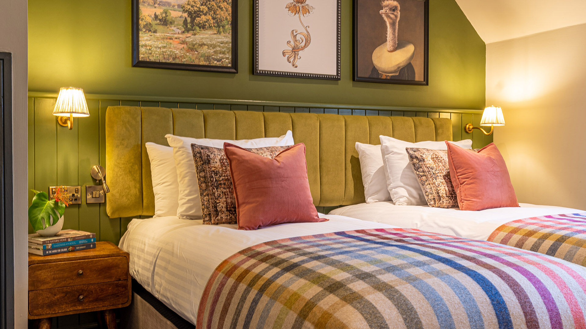 Downstairs, the restaurant bar provides an appealing ambiance (along with great food and drinks). Highlights include a beautiful new bespoke bar topped with aged brass, an exposed brick feature wall, striking floral prints and an array of planting. There are plenty of thoughtful fixtures too - comfy booth seating, cosy nooks for intimate occasions and even USB-C & USB-A plug sockets.
