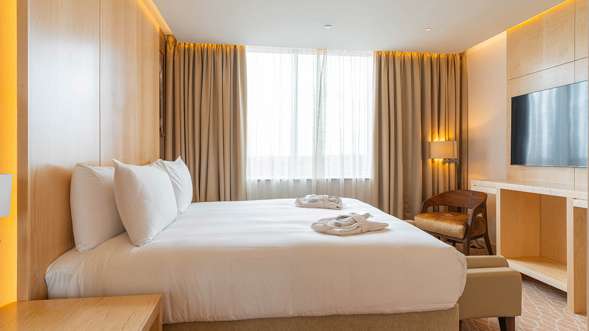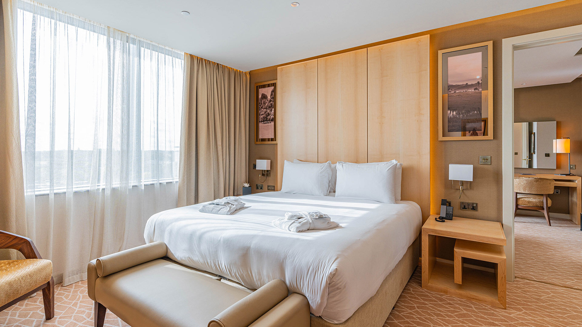 These lavish suites consist of bespoke high-quality joinery, spacious bathrooms with his and hers basins, and sumptuous fabrics and finishes in a palette of neutral shades. These opulent suites offer guests the ultimate experience and space to unwind and relax.