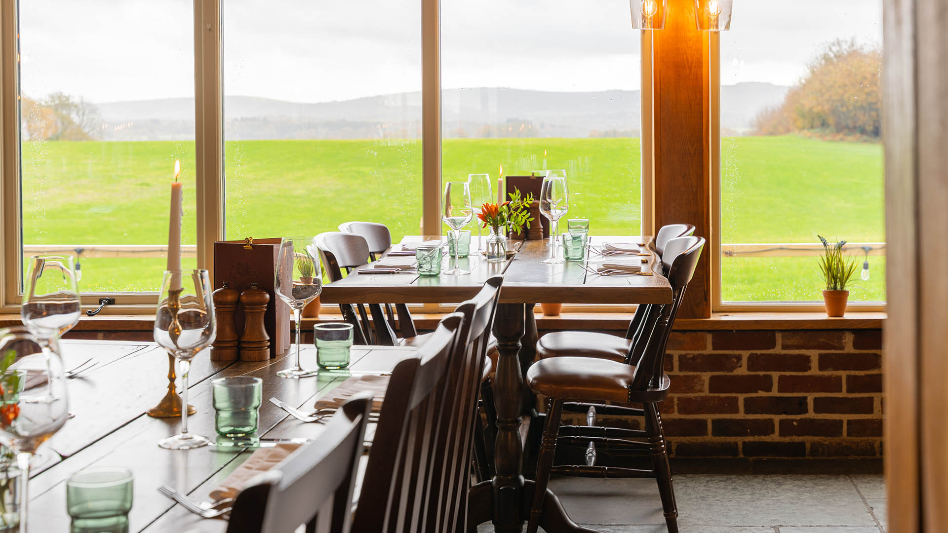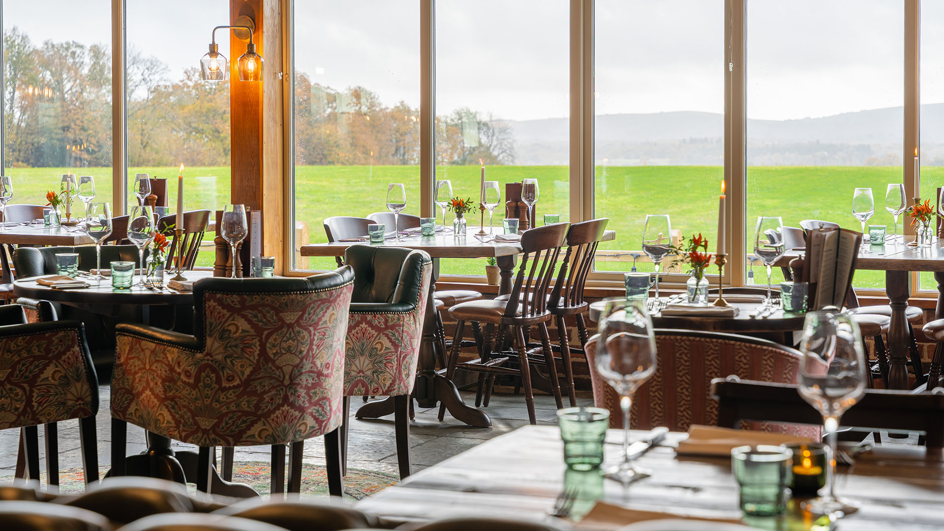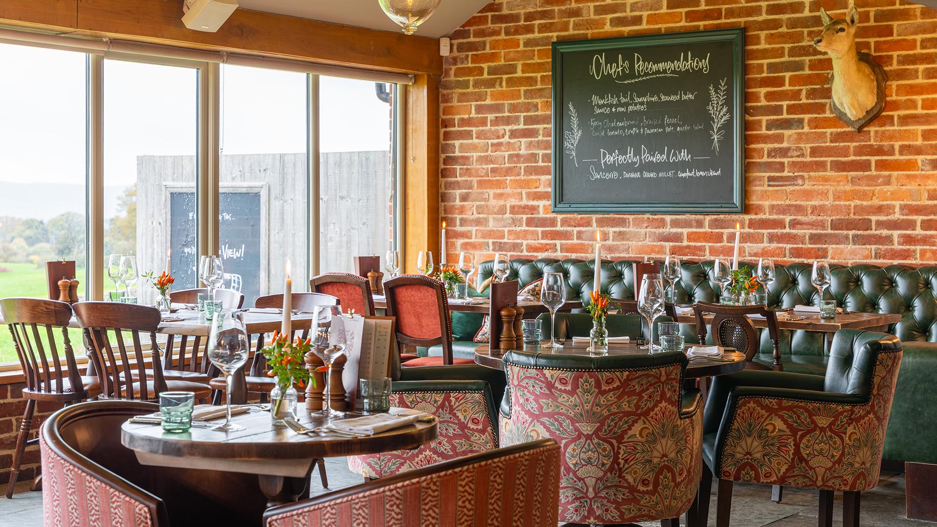 Opening up the space between the bar and the dining room has created a more spacious and welcoming environment. Large picture windows in the dining area frame views of the neighbouring woodland and the rolling South Downs, providing the perfect backdrop for a relaxed meal or drink.