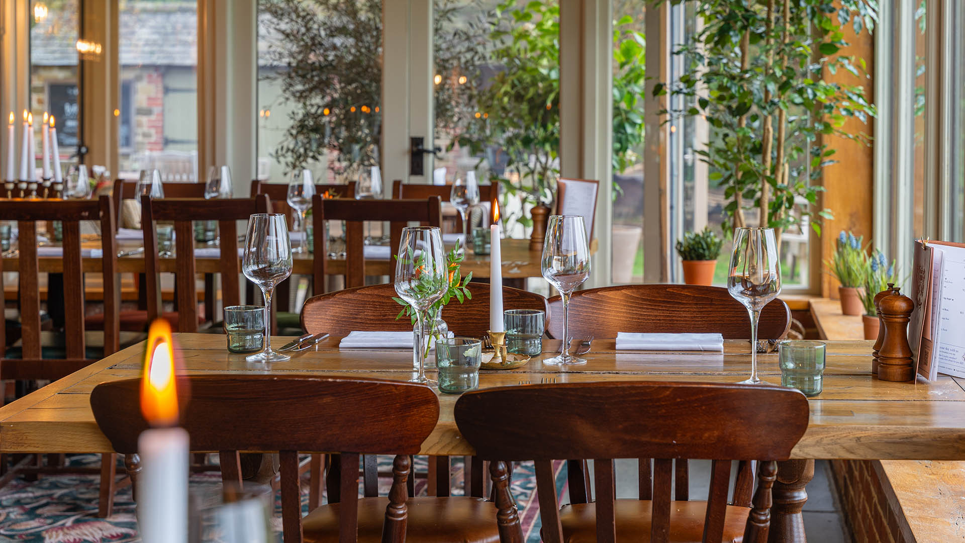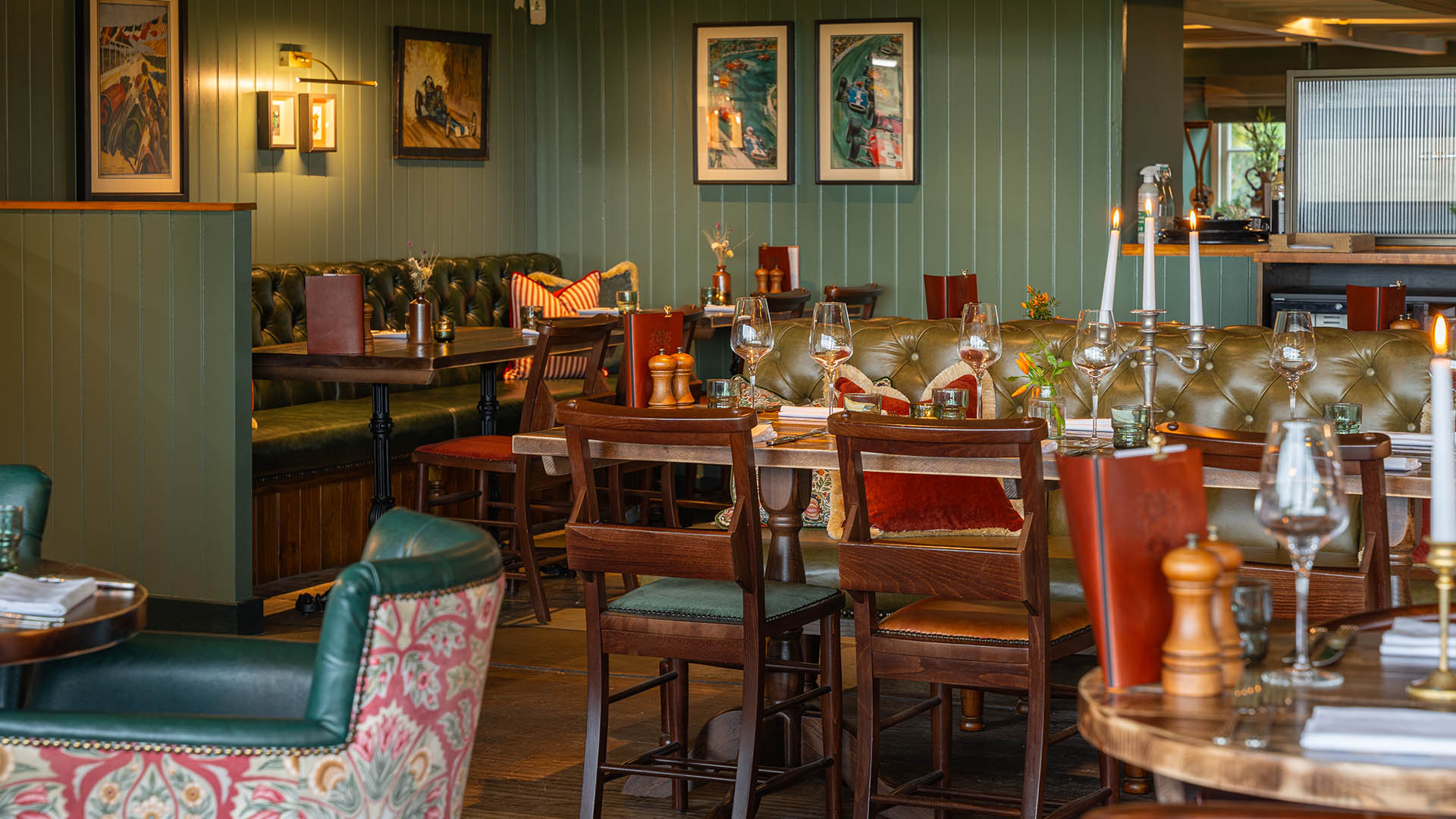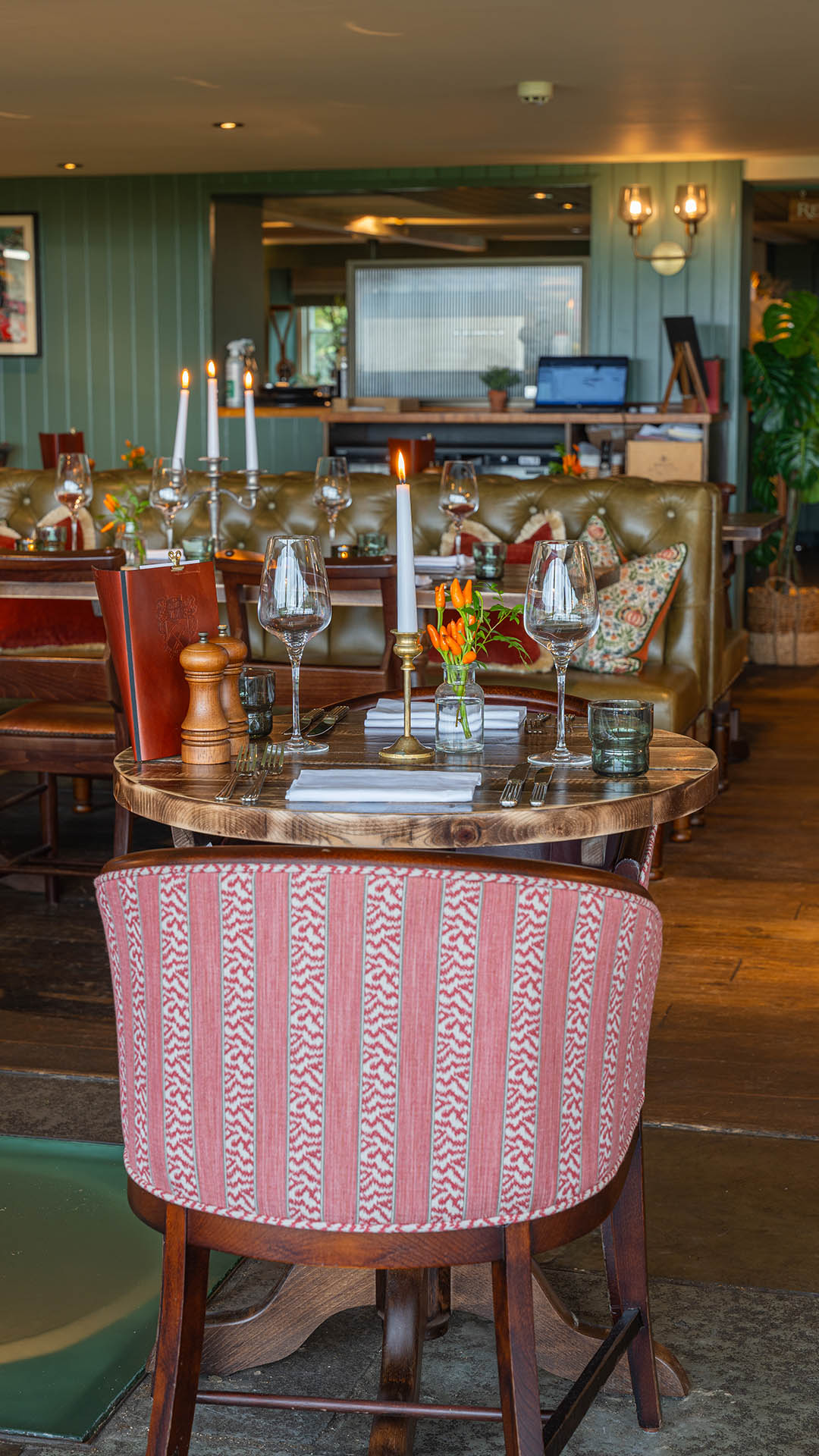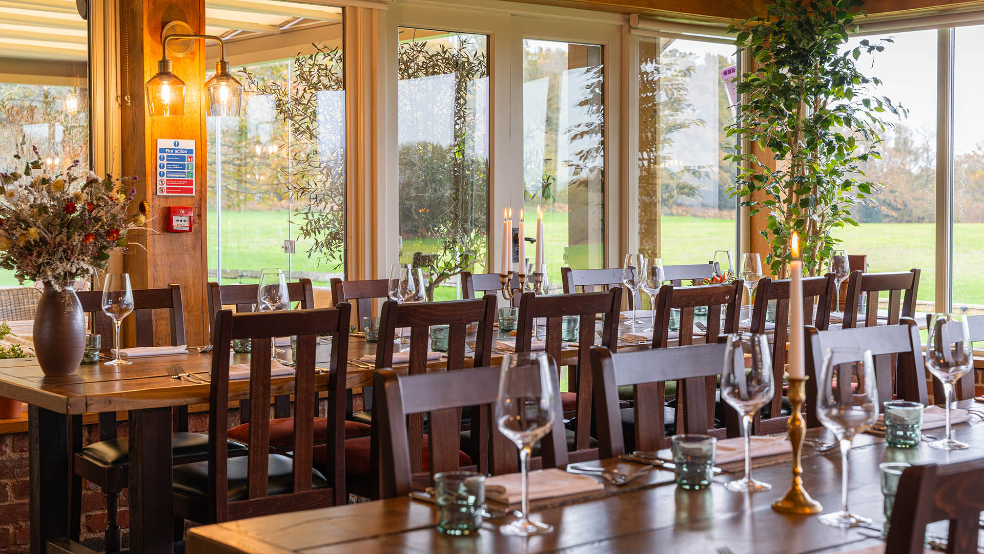 Opening up the space between the bar and the dining room has created a more spacious and welcoming environment. Large picture windows in the dining area frame views of the neighbouring woodland and the rolling South Downs, providing the perfect backdrop for a relaxed meal or drink.