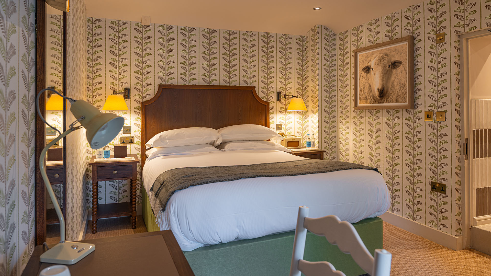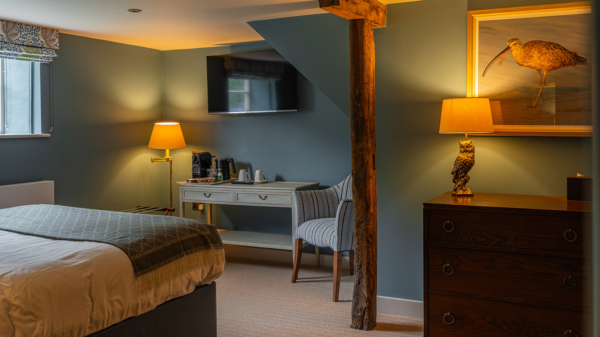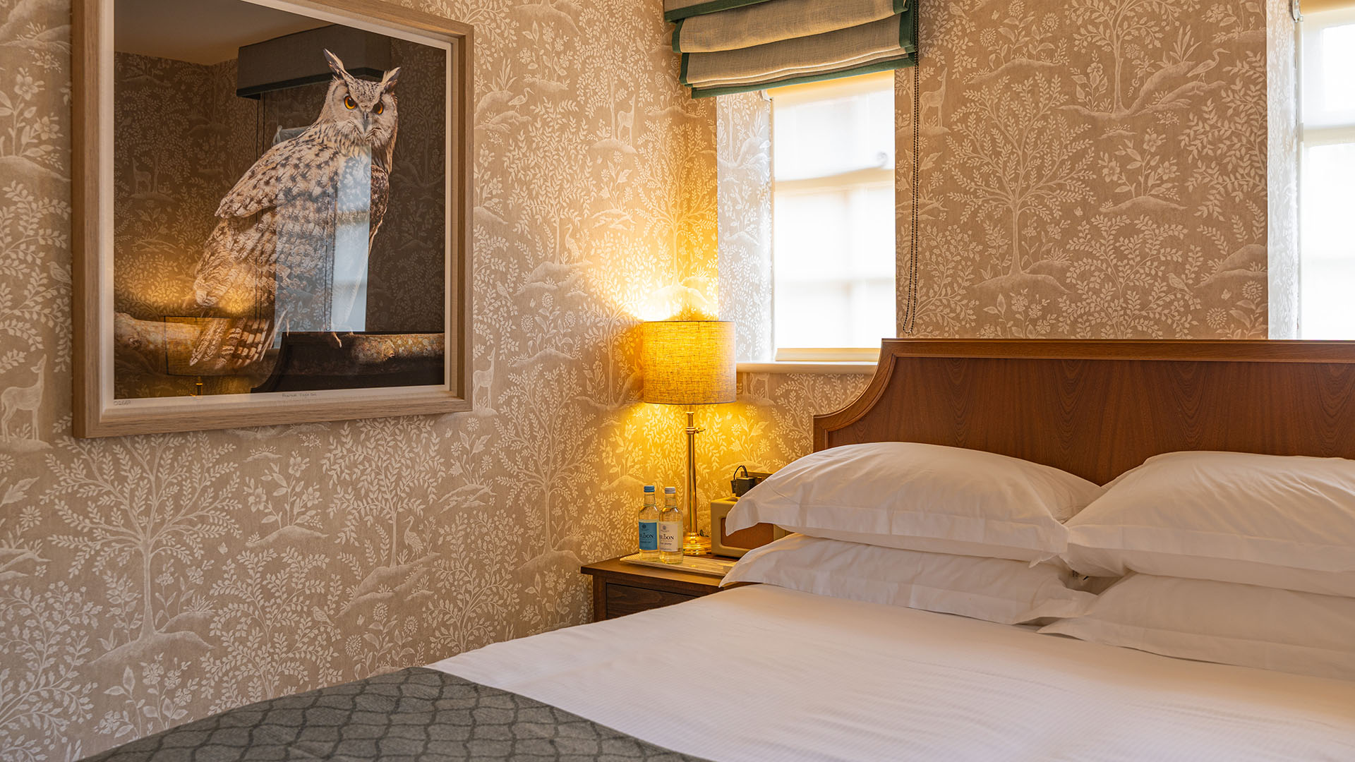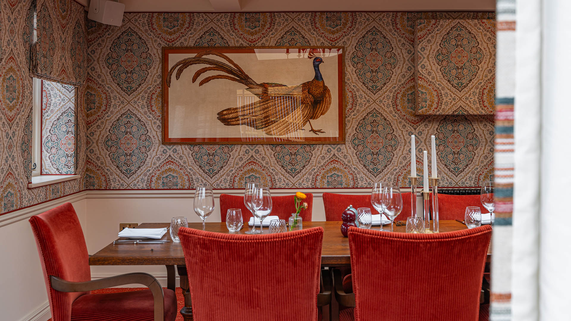 Working in collaboration with renowned interiors studio Nina Campbell, each of the eight bedrooms has been created with comfort and ease in mind. They are named after game birds, including Partridge, Quail, Grouse and Golden Pheasant and are decorated in rich earthy tones with a mix of classic and contemporary wallpapers. Natural materials such as wool, leather and warm wood are layered with antique bronze finishes, vintage furniture and decorative pieces to create a timeless and welcoming feel.