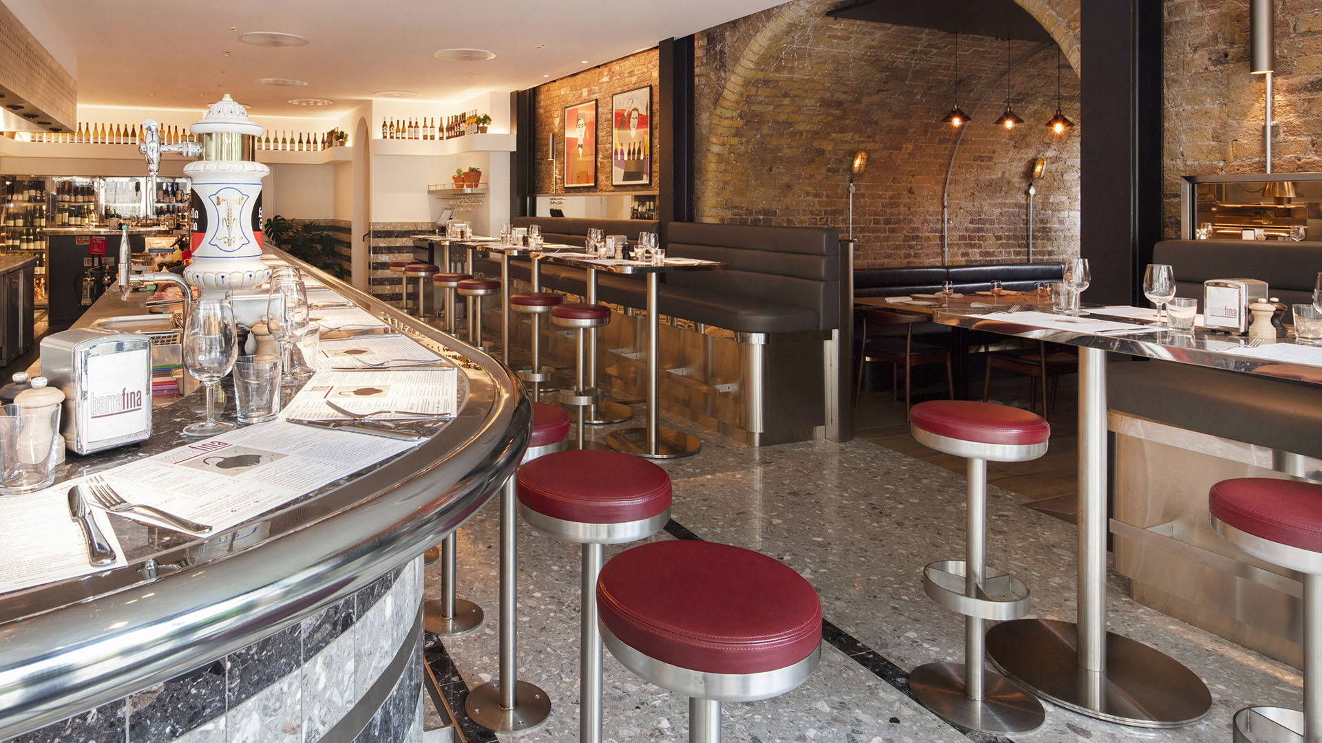 Barrafina has thirty-two stools round its marble bar which overlooking the enticing selection of wines. It also has a bookable snug or private dining room.
