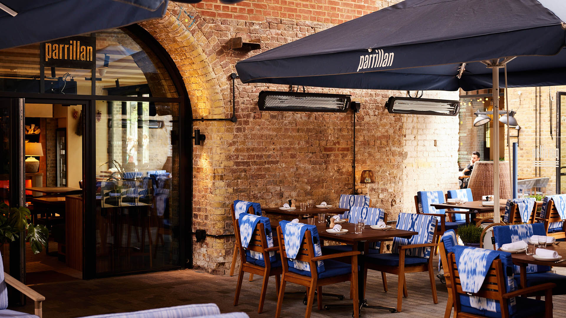 Parrillan is a restaurant with an outdoor terrace. Here the chefs use a wood-fired grill formed from cast concrete to cook the stunning ingredients gently over the flames.
