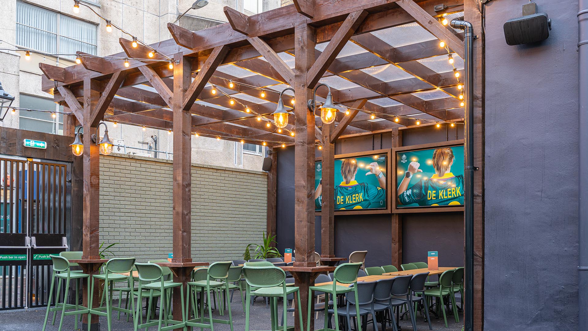 At the heart of the venue is a state-of-the-art beer garden with its own outdoor bar, ensuring you never miss a moment of the action on the big screens. Featuring Cardiff’s largest outdoor UHD wall screen and a fully retractable roof, the covered outdoor area keeps the fun going whatever the weather, all year round.