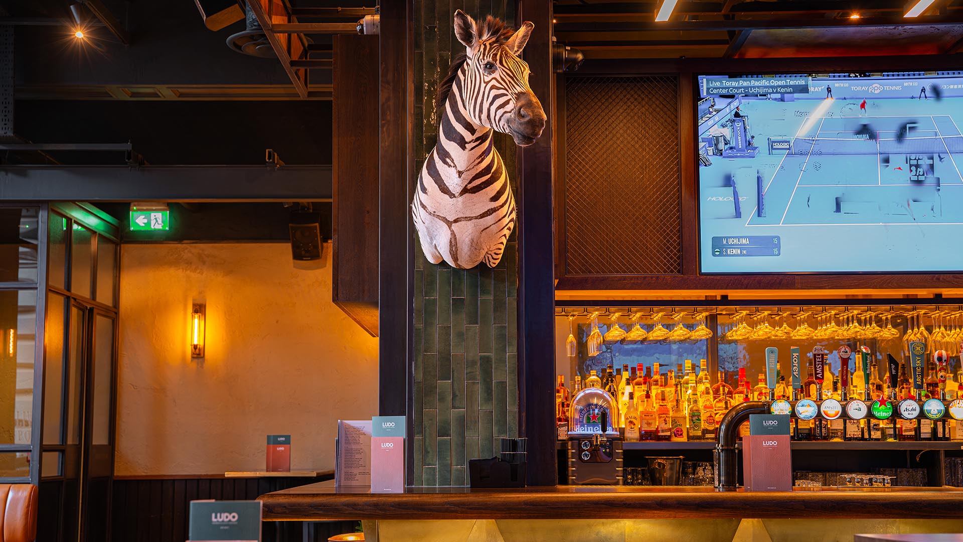 From a game of basketball beneath the city skyline, to interactive darts indoors or the buzz of a live band, LUDO Cardiff is designed to serve up memorable moments from day to night. Playful touches, such as two taxidermy zebra heads framing the bar, add a unique character and spark conversation, highlighting the venue’s vibrant personality.