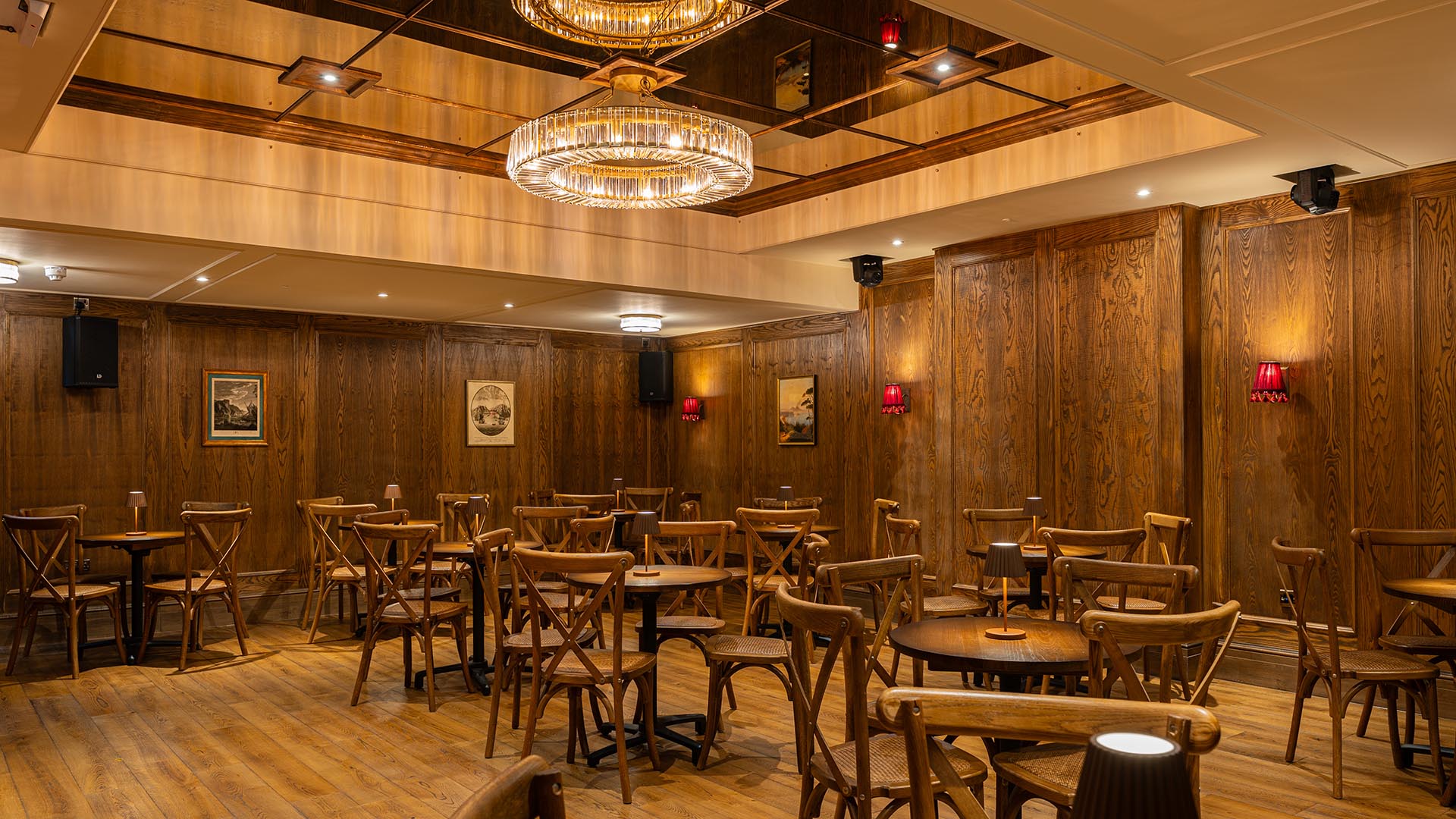Downstairs, The Havannah Room is dedicated to live entertainment and private parties, in keeping with King’s Road’s vibrant history. It features a first-class sound system, a velvet-draped stage, an antique mirrored ceiling and a hidden bar. Ideal for private celebrations, it also hosts events such as burlesque, comedy nights and the classic pub quiz.