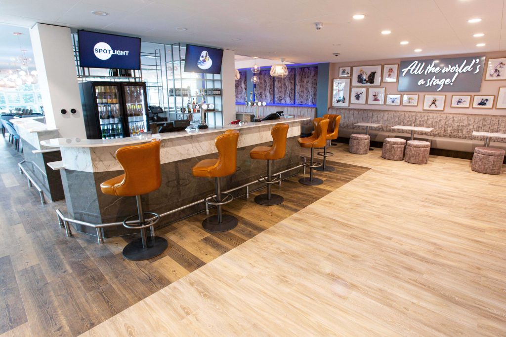 The design features an elegant, relaxed bar area serving a wide selection of drinks for guests to enjoy before, during or after events. With impressive views across the city skyline, the Spotlight VIP Bar is a premium destination that is sure to elevate every visit.