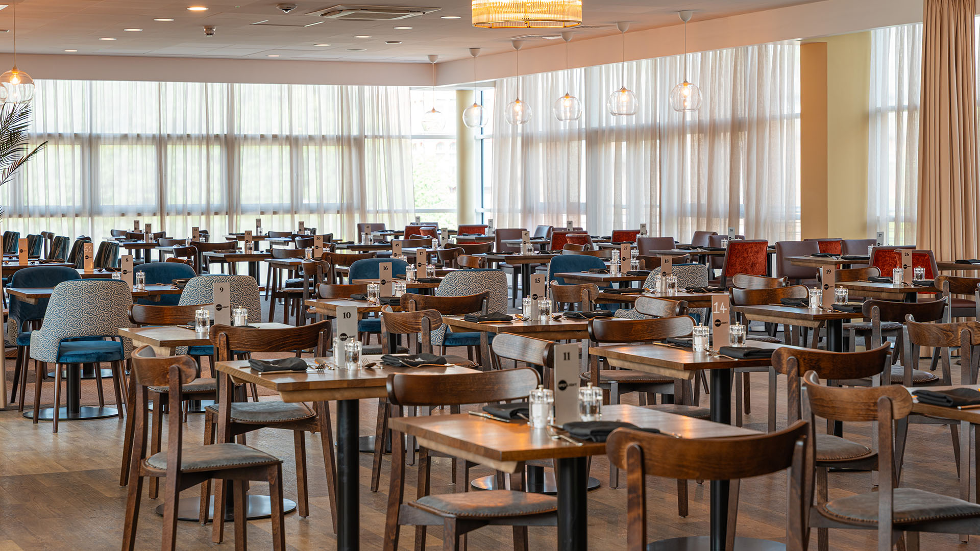 The Spotlight VIP Bar is a stylish and secluded area, ideal for a relaxed meal ahead of an event at the Motorpoint Arena in Nottingham. Located on the fourth floor, the top level of the arena, it is set apart from the busy main concourse and offers guests an exclusive, comfortable hospitality experience along with impressive views of the city skyline.