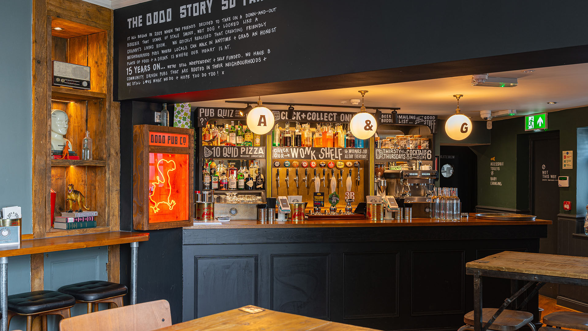 Breathing the Dodo style, with a hint of art deco into this site meant adding colour blocking, cheeky signage, retro reclaimed furniture and industrial touches, as well as the iconic orange neon dodo. The signature Dodo back bar has been added, with the beer taps, of course, taking centre stage. The front bar is ready to serve up cocktails from the bespoke Dodo cocktail stations. This is the eighth premises for the Dodo team, and Concorde are proud to have worked alongside them and Arkells Brewery for many years now, as their estate has continued to grow and flourish.
