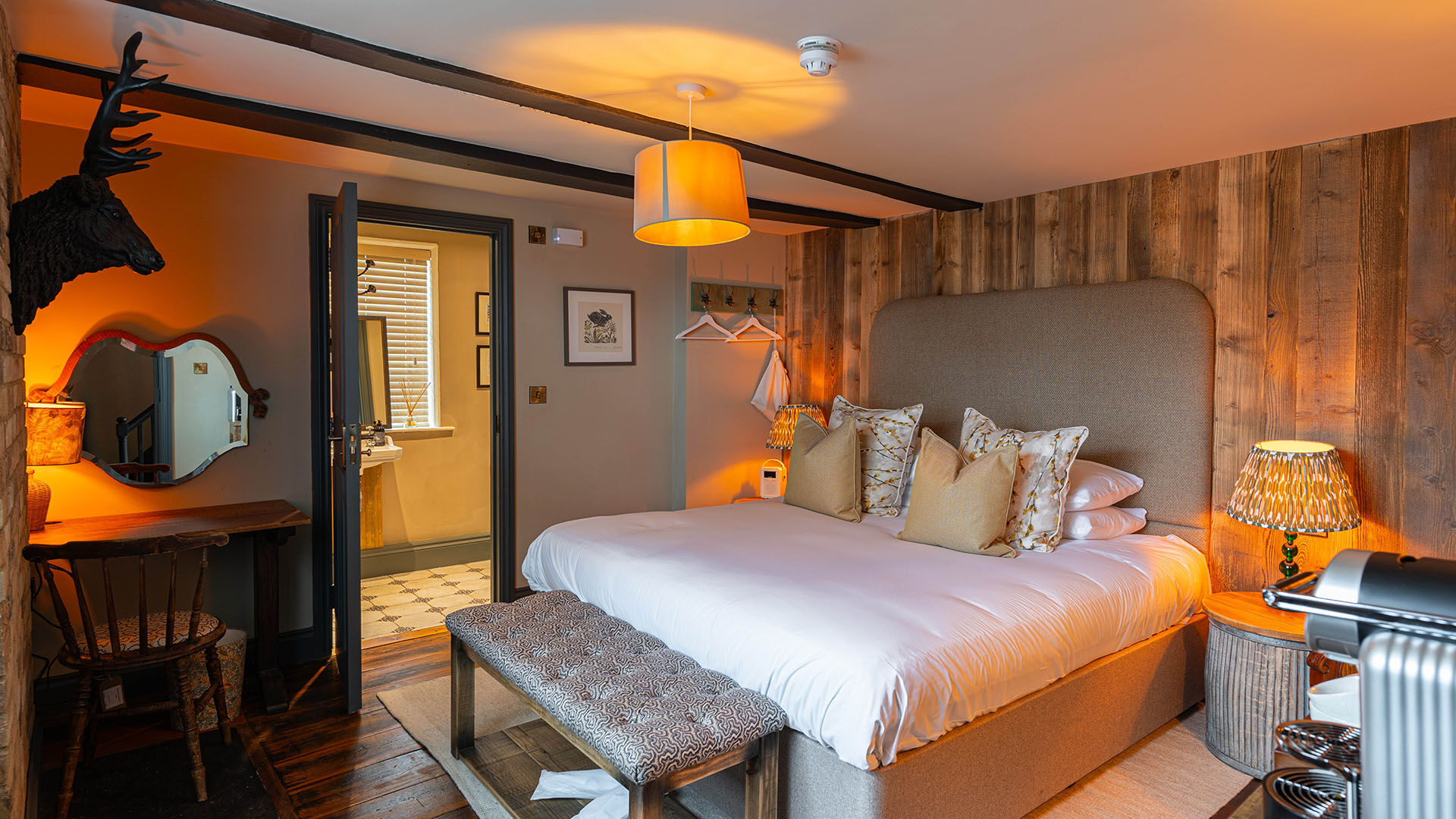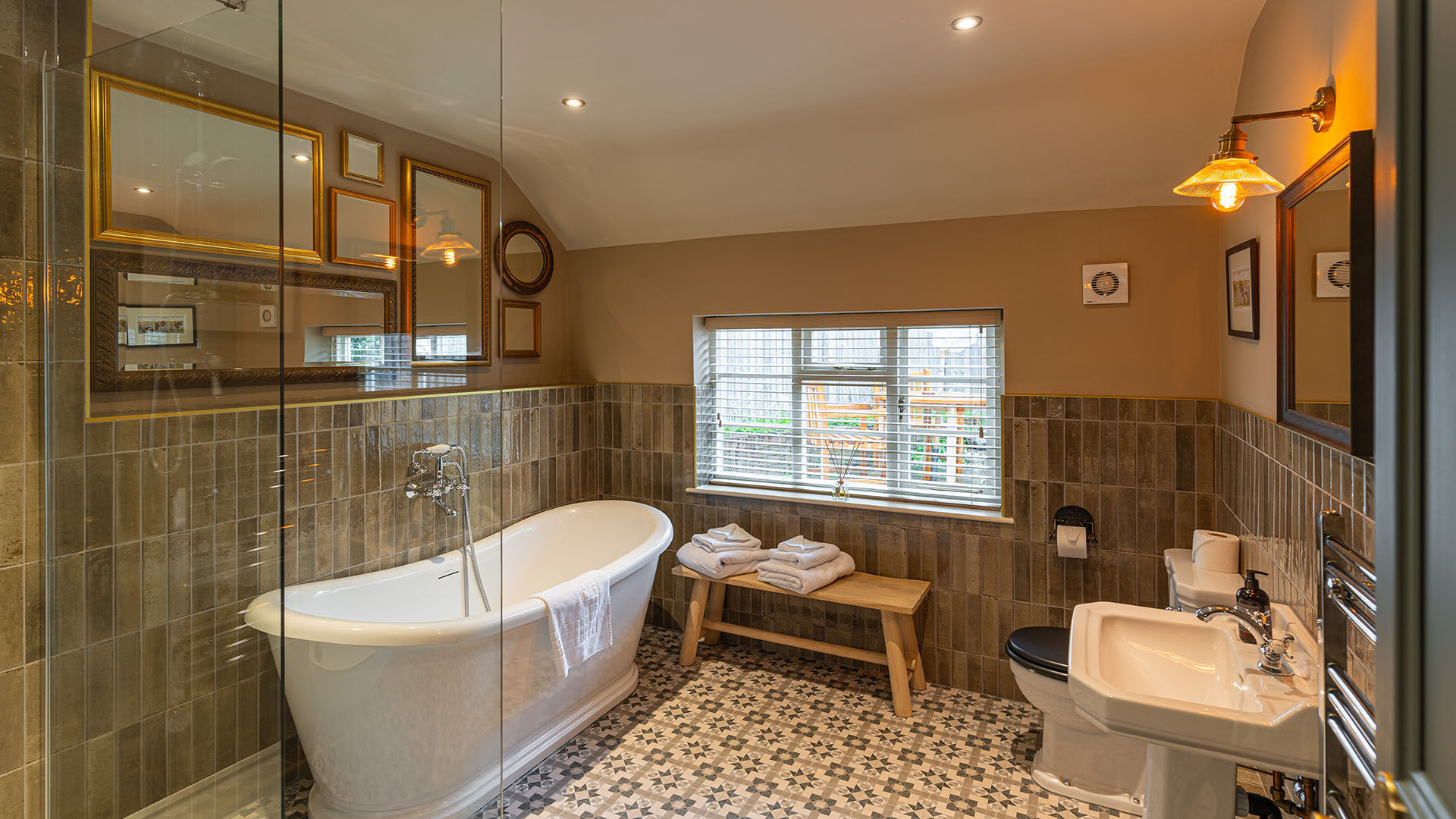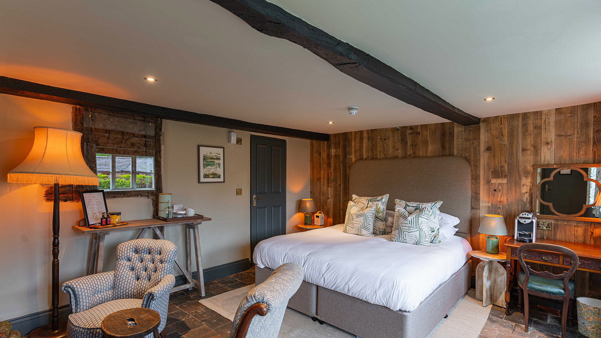 The existing rooms have been reconfigured to make the property operationally viable, the interior design ties through with the styling from the pub, as well as our client’s other timeless sites. Classic, under stated, elegance is the order of the day in this space, with earthy greens and natural tones, layered with decorative tiling, fabrics, and feature lighting to contrast against the brickwork and reclaimed timbers, making this a perfect, cosy retreat to relax in after a muddy day exploring in the Staffordshire countryside.