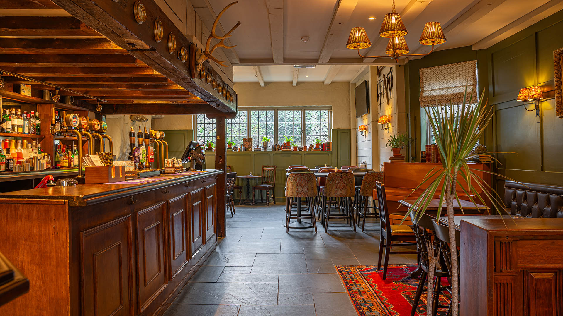 The cosy open fireplace offers the perfect retreat on colder days, while the inviting beer garden beckons on sunny afternoons. Inspired by the colours and textures of the pub’s woodland surroundings, the newly refreshed interiors see shades of pastel greens and burnt reds complement the cosy charm of the bar and snug areas. In the dining room and restaurant, lighter neutral colours share the space with walls adorned in colourful feature wallpaper, with nods to the pub’s history decorated throughout.