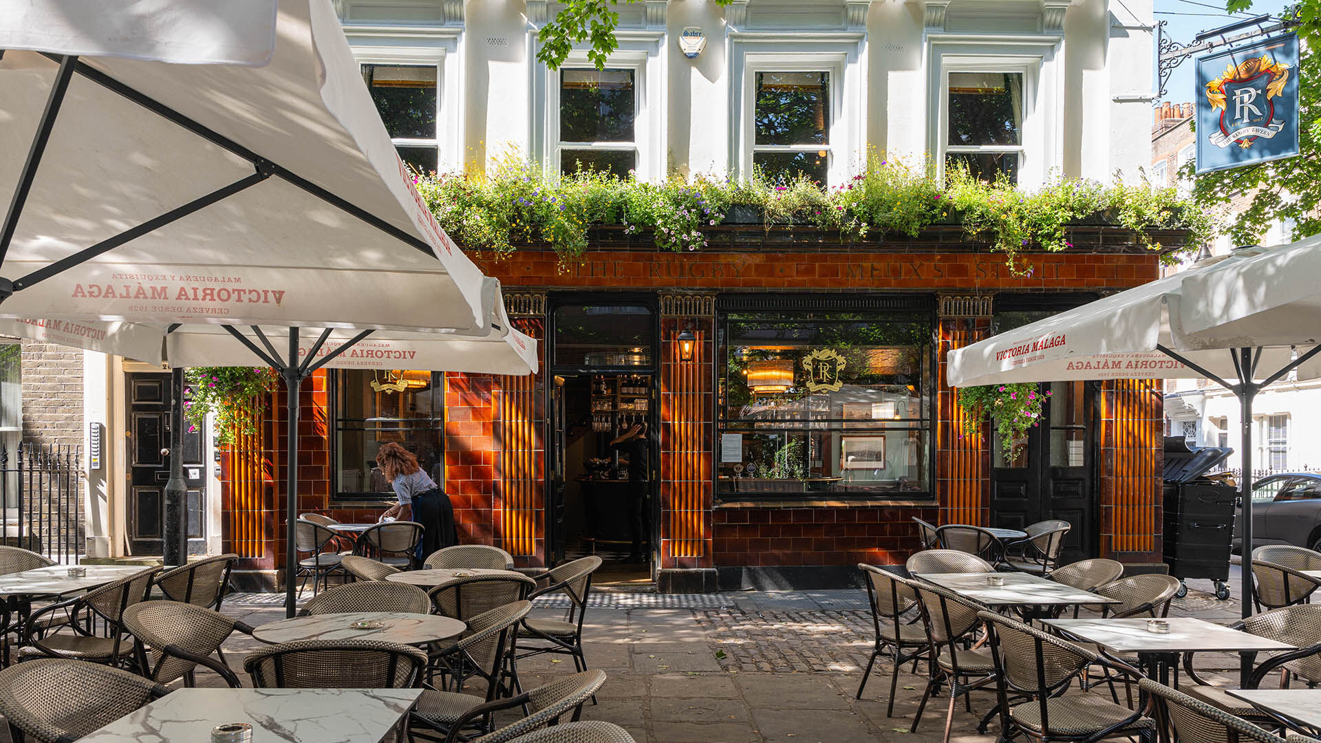 On the first floor you will find Bistro Bleu, a French-influenced Dining Room. Inspired by the beautiful Art Deco Style, the restaurant features rich deep blues, dark walnut timbers and stained brass details. Outside this wonderfully tiled, and quintessentially London pub façade is a shaded terrace area which sits under the trees of Great James Street offering a perfect spot for outdoor drinking.