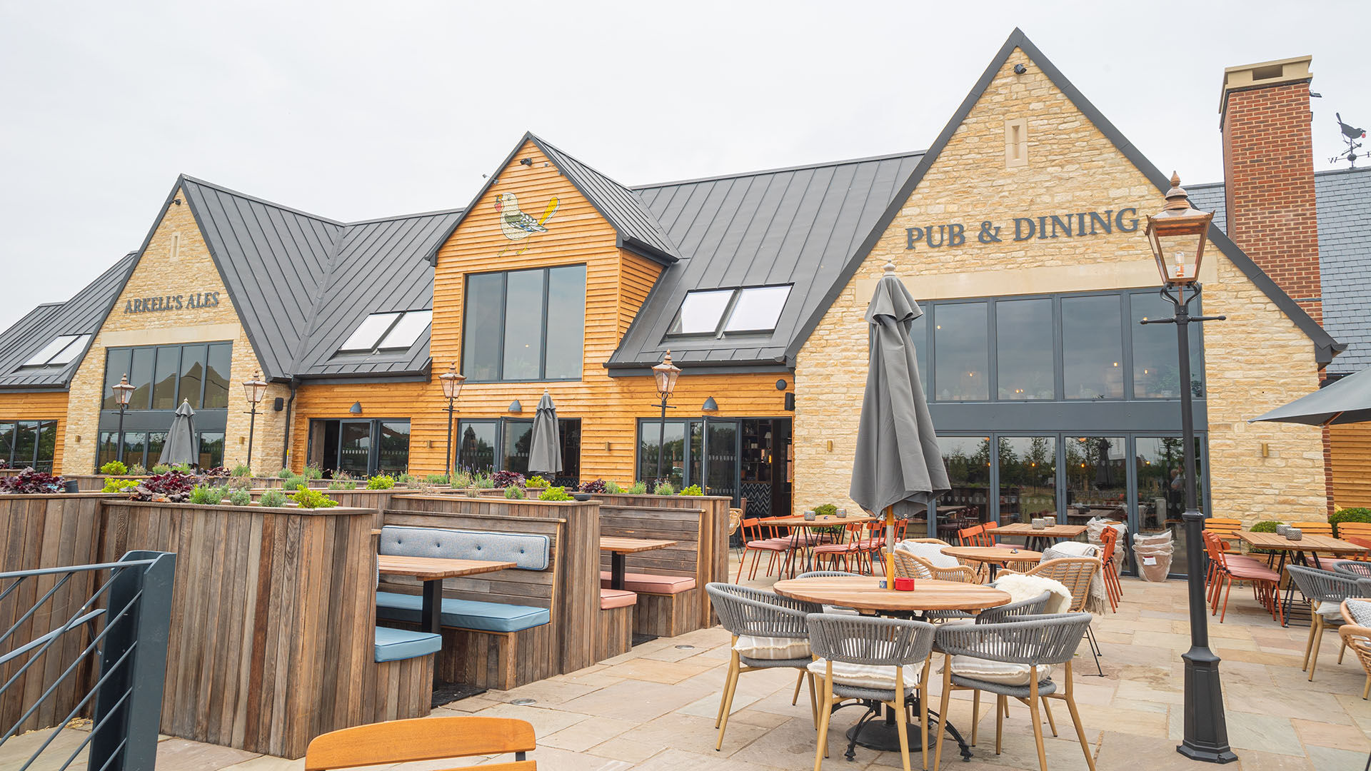 Arkell's newest and biggest pub project, yet, The Strawberry Thief was designed by our team to include a variety of indoor dining areas, a large outdoor garden with plenty of seating and private 'dining sheds'.