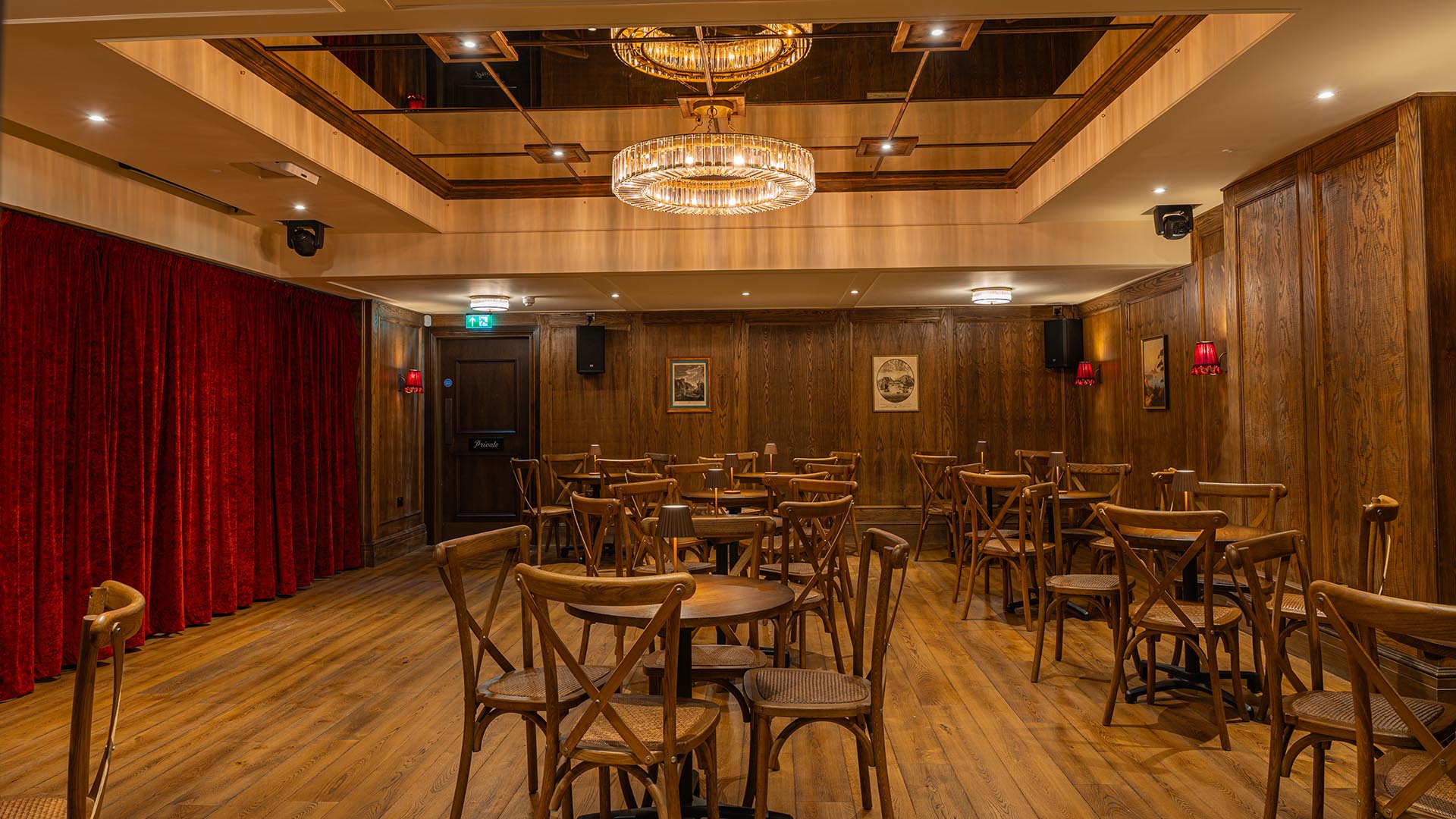 Downstairs, The Havannah Room is dedicated to live entertainment and private parties, in keeping with King’s Road’s vibrant history. It features a first-class sound system, a velvet-draped stage, an antique mirrored ceiling and a hidden bar. Ideal for private celebrations, it also hosts events such as burlesque, comedy nights and the classic pub quiz.
