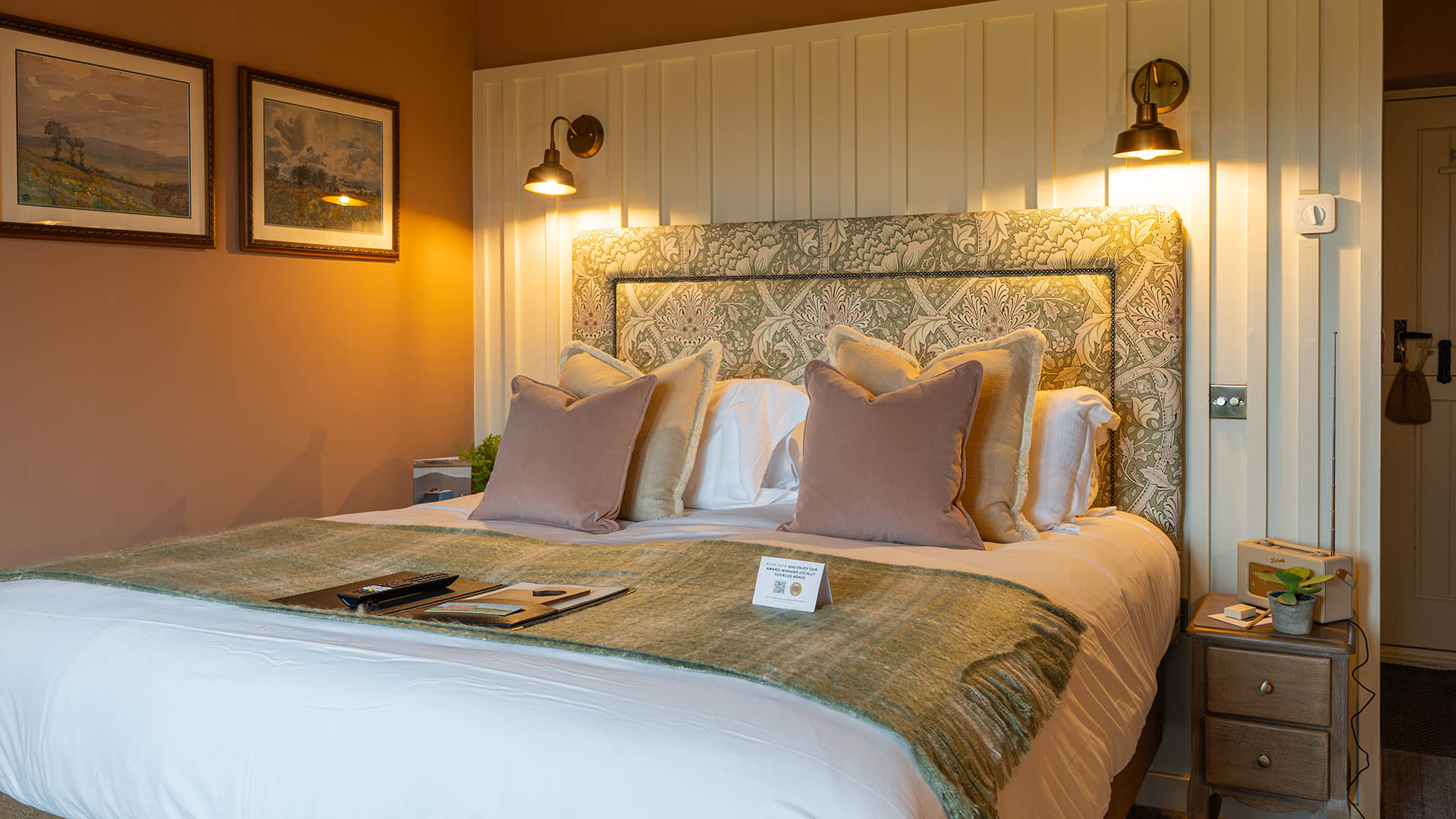 The project included a complete refurbishment of the pub and bar to Butcombe Inns’ signature standard, along with updates to the boutique bedrooms. Across the main building and a separate annexe, fourteen beautifully styled rooms now offer guests a warm and luxurious stay that perfectly complements the surrounding countryside.