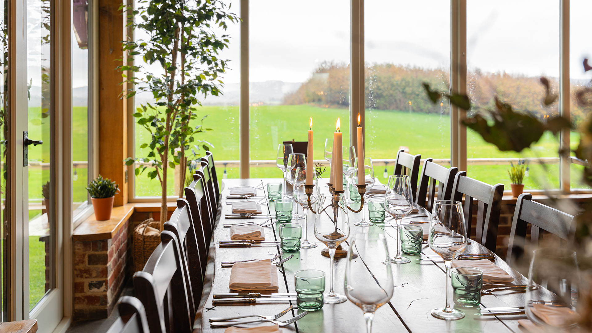 Opening up the space between the bar and the dining room has created a more spacious and welcoming environment. Large picture windows in the dining area frame views of the neighbouring woodland and the rolling South Downs, providing the perfect backdrop for a relaxed meal or drink.