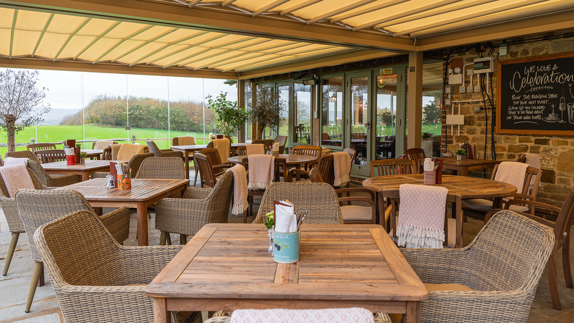 The Welldiggers Arms outdoor seating and chairs with blankets